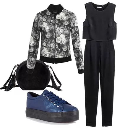 Bomber jacket, Anna Prelevic by Helmi, 89.90 ευρώ, www.helmi.grMεταλιζέ flatforms, Bozikis, 19.99 ευρώ, www.bozikis.grΑμάνικο jumpsuit, H&M, 49.99 ευρώ, www.hm.comΤσαντάκι, Lydc, 26.00 ευρώ, www.favela.gr