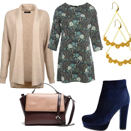 Μίνι φόρεμα Helmi, 49,90 ευρώ, helmi.grΖακέτα πλεκτή Axel, 66,00 ευρώ, axelaccessories.comΒελούδινα μποτάκια Fred,79,00 ευρώ, keepfred.grΤσάντα ώμου Migato, 60,00 ευρώ, migato.comΧειροποίητα επίχρυσα σκουλαρίκια Artistic Shop, 34,00 ευρώ, jamjar.gr