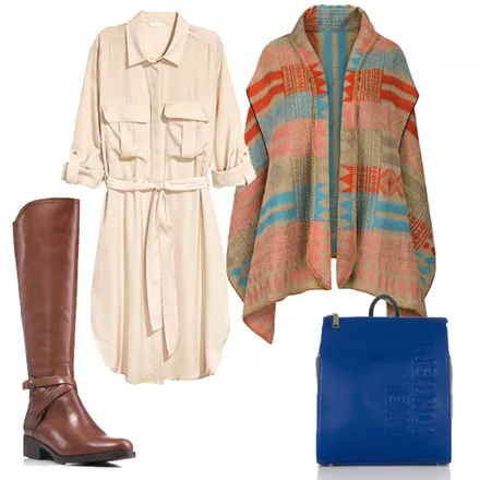 Φόρεμα σεμιζιέ H&M, 29,99 ευρώ, hm.comΚάπα με ethnic σχέδια Celestino, 8,95 ευρώ, celestino.grΜπότες χαμηλές NAK, 124,50 ευρώ, nak.grΣακίδιο πλάτης Axel Accessories, 65,00 ευρώ, axelaccessories.gr