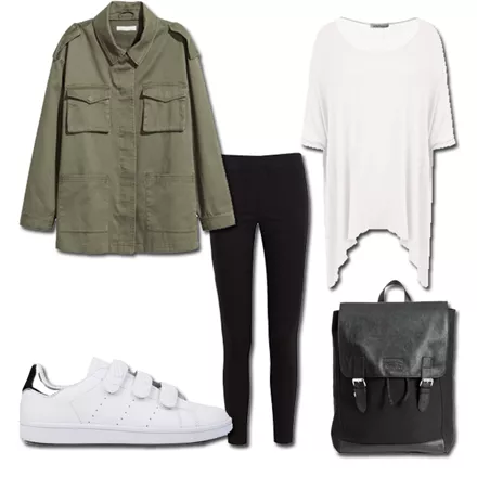 Jacket, H&M, 39,99 ευρώ, hm.comΤοπ, Celestino, από 13,99 τώρα 9,99 ευρώ, celestino.grΚολάν, BSB, 29,90 ευρώ, bsbfashion.comBackpack, H&M, 29,99 ευρώ, hm.com Sneakers, Migato, 45,00 ευρώ, migato.com