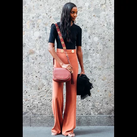 Μη φοβηθείς να επενδύσεις σε κάποιο παντελόνι καμπάνα με πιο ανοιχτή ή έντονη απόχρωση. Για παράδειγμα αυτή η πορτοκαλί καμπάνα αποπνέει μία 70s νότα.
