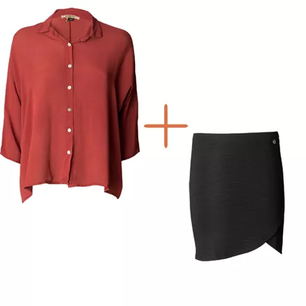 Ριχτό πουκάμισο + μίνι φούστα για ενα εναλλακτικό office lookΠουκάμισο 44,90 ευρώΜίνι φούστα 34,90 ευρώ