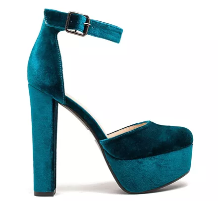 Η Μαίρη Συνατσάκη με τυρκουάζ βελούδινες ψηλοτάκουνες γόβες