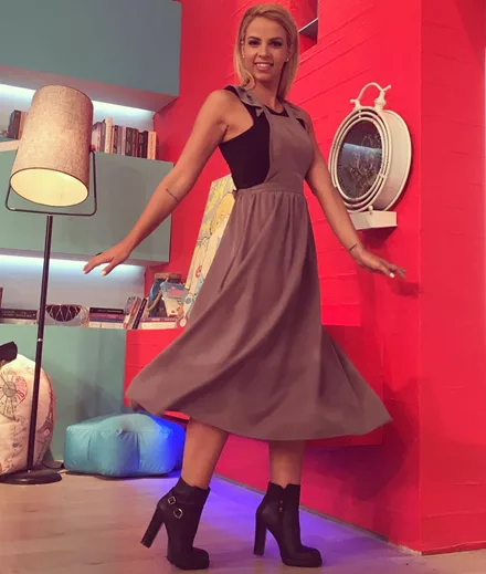 Η Τζένη Μελιτά με ψηλοτάκουνα μαύρα μποτάκια