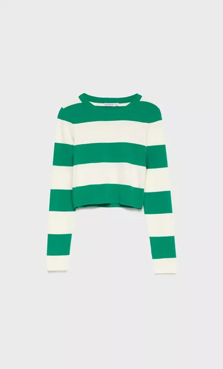 Πλεκτό πουλόβερ με ρίγες Stradivarius