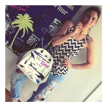 Η Μαίρη Συνατσάκη δείχνει την καλλιτεχνική της πλευρά με μια τσάντα γεμάτη χρώμα και πινελιές