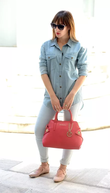 Το double denim look είναι το πιο ευκολοφόρετο της σεζόν. Η κόκκινη τσάντα ωστόσο του δίνει έναν αέρα θηλυκότητας και πολυτέλειας!