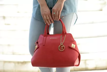 Διαχρονική και εντυπωσιακή, η κόκκινη τσάντα χειρός με τις χρυσές λεπτομέρειες δίνει glam χαρακτήρα σε κάθε πρωινό σου look.