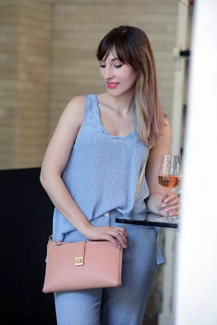 Η μεταλλική απόχρωση της τσάντας ταιριάζει εύκολα με όλα όπως και με αυτό το αέρινο, καλοκαιρινό look