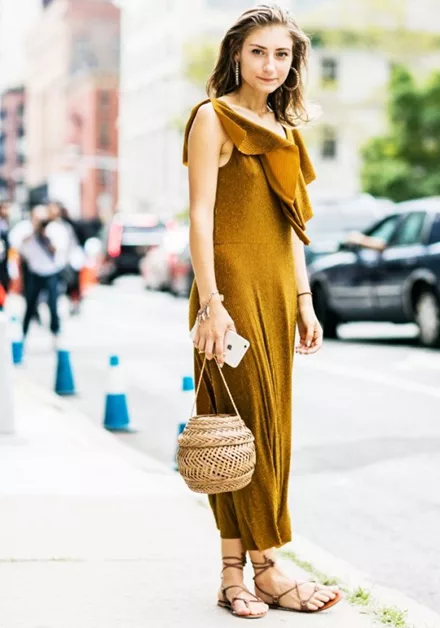 Ένα φόρεμα με βολάν σε μουσταρδί απόχρωση θεωρείται το must-have κάθε ενημερωμένης γκαρνταρόμπας.