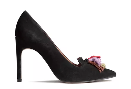 Suede γόβα με φουντίτσες H&M, 59,99 ευρώ, hm.com/gr