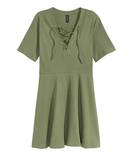 Έχεις σωματότυπο «αχλάδι»; Επίλεξε ένα φόρεμα σε Α γραμμή με λεπτομέρειες που προσελκύουν τα βλέμματα στο πάνω μέρος. Φόρεμα Η&Μ, 19,99 ευρώ, www.hm.com/gr