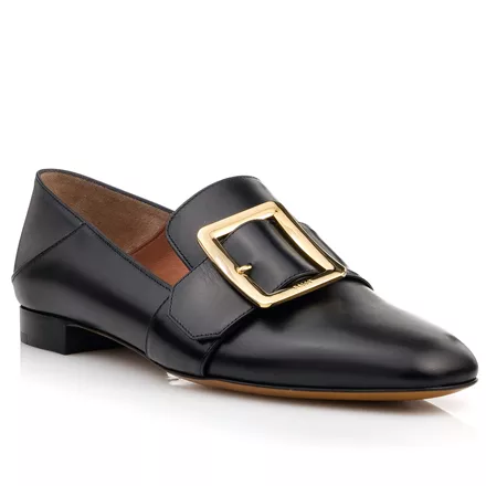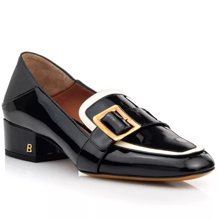 Το flat babouche κομμάτι, συνοδεύεται από δύο νέα σχέδια με τακούνι στη συλογή Φθινόπωρο/ Χειμώνας, όλα με το γοητευτικό, εμπνευσμένο από την τετράγωνη αγκράφα, του1969. Η Janelle υπήρξε σταθερό μέλος της γυναικείας συλογής παπουτσιών Bally από τότε που πρωτοκατασκεύασε τις πρώτες σόλες.