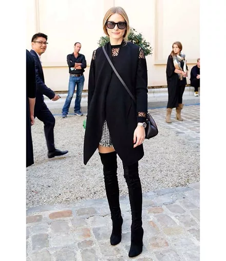 Ένα παλτό σε στενή γραμμή είναι η τέλεια συνοδεία των OTK (over- the- knee) για μία πιο κομψή και επίσημη εμφάνιση. (Olivia Palermo)