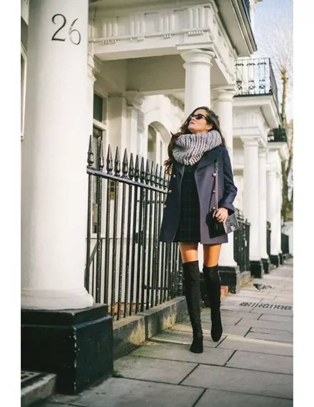 Δοκίμασε να φορέσεις τις μπότες σου μαζί με μίνι φούστα και φαρδύ κασκόλ που θα τυλίξεις γύρω από τους ώμους και το στέρνο σου.