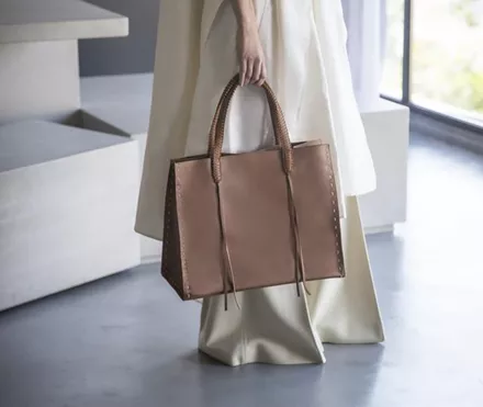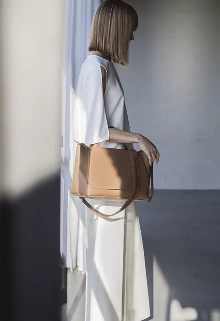 Ανάμεσα στα μοντέλα που ξεχωρίσαμε είναι η ιδιαίτερη και πολύ πρακτική “Top Handle Bag” και η σύγχρονη “Knot tote” που επιδεικνύει εκλεπτυσμένη δεξιοτεχνία με κομψoύς δερμάτινους κόμπους να αγκαλιάζουν τη βάση κάθε λαβής. Παρουσιάζοντας ενδιαφέρον στην υφή η συλλογή Callista Crafts ενσωματώνει τη ζεστασιά της φύσης με το εκ διαμέτρου αντίθετο, αυστηρό αστικό περιβάλλον.