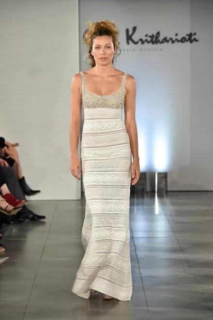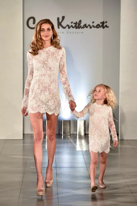 Η νέα συλλογή του οίκου είχε όλα τα χαρακτηριστικά που γνωρίζουμε: εξαιρετικές ολομέταξες δαντέλες, φίνα υφάσματα, περίτεχνα χειροποίητα κεντήματα με πολύτιμους λίθους σε cocktail και βραδινά φορέματα αλλά και σε νυφικά. Ιδιαίτερη αίσθηση προκάλεσε στους καλεσμένους η συλλογή για τις μαμάδες και τις κόρες, τμήμα της οποίας παρακολουθήσαμε και στο πρόσφατο Madwalk.
