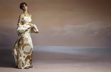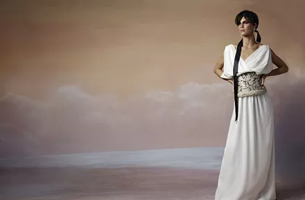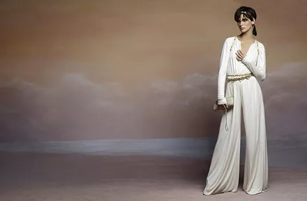 Η υπέροχη νεοεμφανιζόμενη Γαλλίδα ηθοποιός Marine Vacht ενσαρκώνει μια 'ελληνίδα θεά' που θα μπορούσε ομως να ζει στη... Νέα Υόρκη ή και στο Παρίσι ή και στα ελληνικά νησιά. Μια αρμονική παλέτα από ζεστά καφέ, ώχρες και πολυτελείς λάμψεις χρυσού και μπρούντζου χρωματίζει κομψά ταγιέρ, αέρινα φορέματα και jumpsuits ενώ τα εντυπωσιακά πανύψηλα gladiator πέδιλα και τα αξεσουάρ αποπνέουν διαχρονική κομψότητα.
