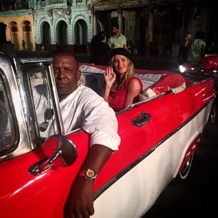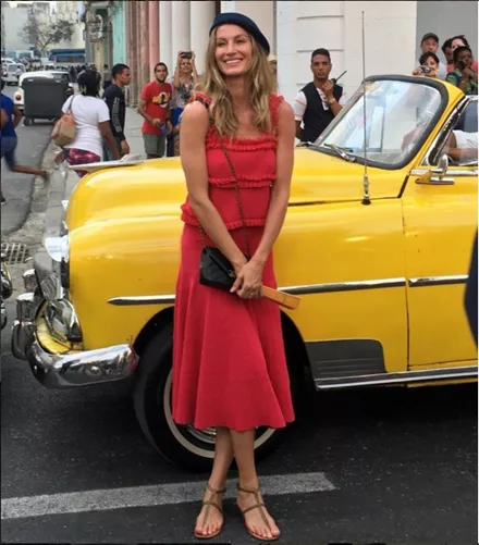 Η Gisele μέσα σε ένα από τα παραδοσιακά ταξί της Αβάνα.