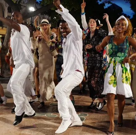 Μετά το show οι καλεσμένοι και τα μοντέλα μπλέχτηκαν μαζί με Κουβανούς χορευτές σε μια ξέφρενη conga!