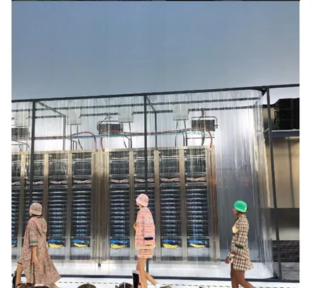 Σε κέντρο ψηφιακών δεδομένων μεταμορφώθηκε αυτή τη φορά ο μεγαλοπρεπής χώρος, με κατακόρυφους πύργους γεμάτους πολύχρωμα καλώδια να διαμορφώνουν την πασαρέλα. Λίγα μόλις λεπτά μετά την έναρξη του show, οι πρώτες φωτογραφίες εμφανίστηκαν κιόλας στο instagram, τονίζοντας έτσι και τη σημασία πίσω από την επιλογή του θέματος: η τεχνολογία ξεκινά από κείνα τα δωμάτια των servers, άλλωστε.