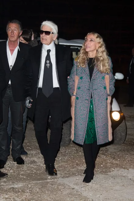 Καθώς οι επισκέπτες έπιναν σαμπάνια μπροστά από τις ψεύτικες προσόψεις της Αρχαίας Ρώμης, ο ουρανός έγινε μαύρος. Χίλια περίπου κεριά αρχίζουν να τρεμοπαίζουν και να αντανακλούν τη λάμψη τους στις καρφίτσες Chanel τα σκουλαρίκια πολυέλαιος και τις μεταλλικές ακράφες στις καπιτονέ τσάντες.