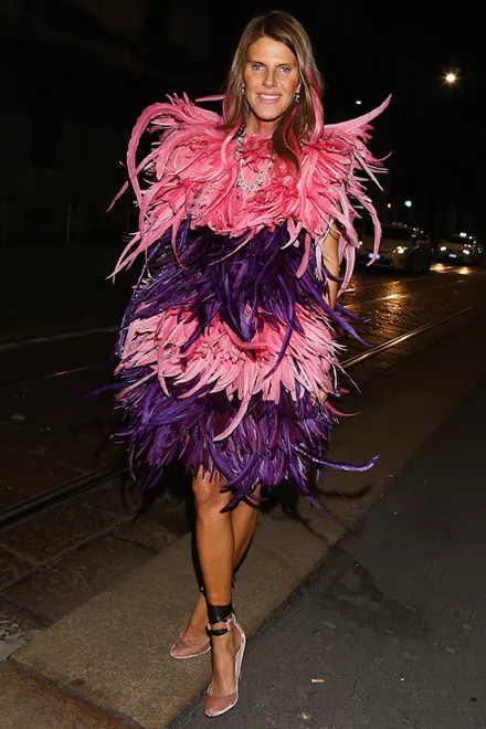 H Anna Dello Russo με μίνι φόρεμα με φτερά στο show Moschino FW2016