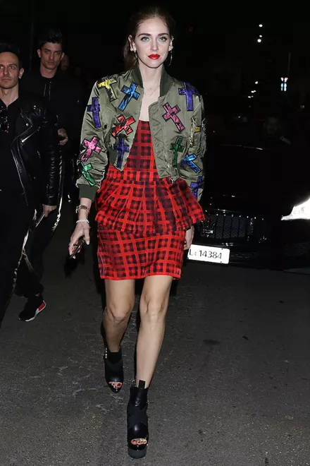 H Chiara Ferragni με grunge φόρεμα και bomber jacket στο show Moschino FW2016