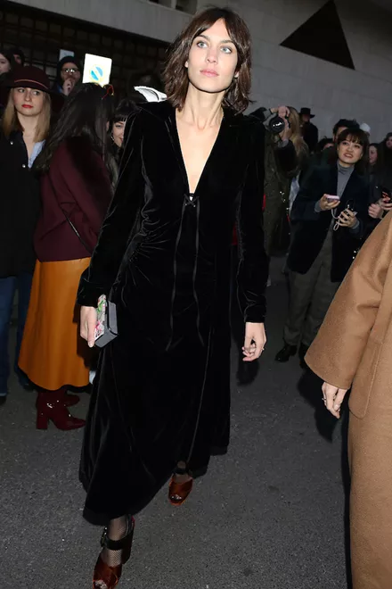 H Alexa Chung με βελούδινο φόρεμα στο show Prada FW2016