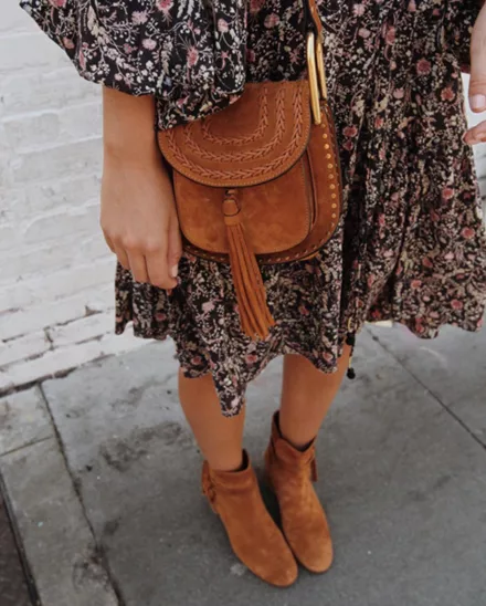Συνδύασε το αγαπημένο σου boho φόρεμα με σουέντ αξεσουάρ, όπως η Mija Flatau.