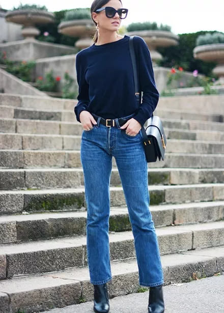 Denim παντελόνι + μαύρο ζιβάγκο φορεμένο από μέσα. Φωτογραφία: Fashion VibeΔιάβασε επίσης: Πώς φορούν τώρα το πουλόβερ τα πιο stylish κορίτσια