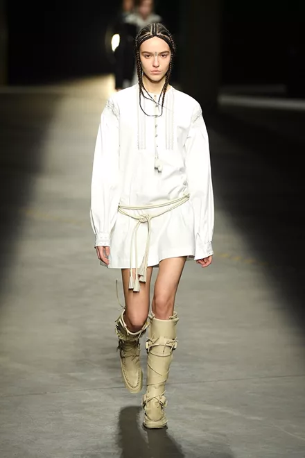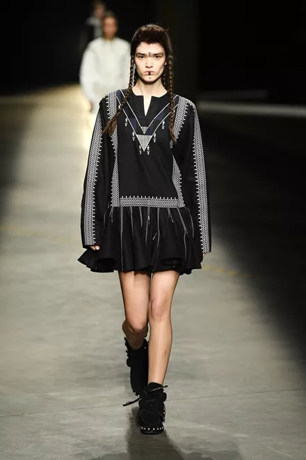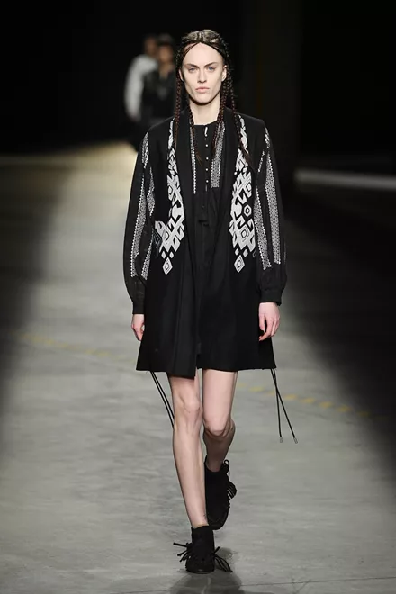 H Κίνα, το Βιετνάμ, το Μεξικό και το Περού δανείζουν τις λαογραφικές τους αναφορές στη συλλογή. Γνώριμα υλικά, όπως ο καμβάς, το suede, το denim και το δέρμα μεταμορφώνονται μέσα από τα έμπειρα μάτια των σχεδιαστών, τα signature δερμάτινα biker jackets διακοσμούνται με κρόσσια ενώ τα φορέματα είναι εμπνευσμένα από παραδοσιακές ρουμανικές αγροτικές μπλούζες.