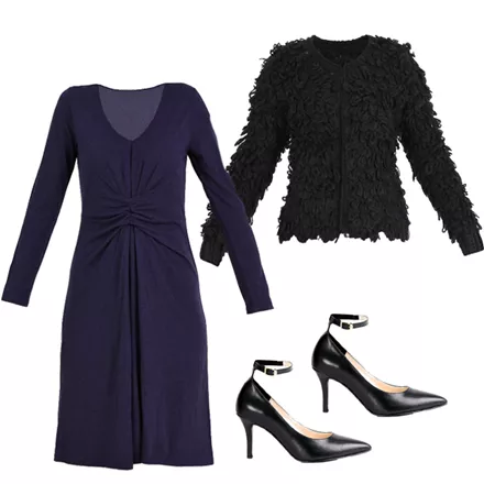Φόρεμα, e-xclusive, 35,00 ευρώ, www.e-xclusive.comΤζάκετ, e-xclusive, 51,00 ευρώ, www.e-xclusive.comΔερμάτινες γόβες, e-xclusive, 50,00 ευρώ, www.e-xclusive.com