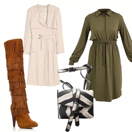 Φόρεμα σεμιζιέ e-xclusive, από 49,00 τώρα 29,00 ευρώ, e-xclusive.comΠανωφόρι από μαλακό ύφασμα H&M, 69,99 ευρώ, hm.com/grΤσάντα attrattivo, από 39,00 τώρα 27,90 ευρώ, store.attrattivo.grΜπότες Steve Madden, από 349 τώρα 279 ευρώ, nak.gr
