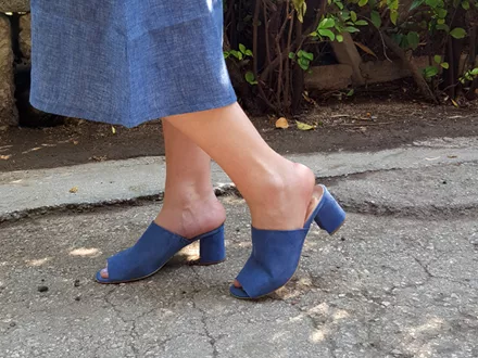 Τα mules από μαλακό σουέντ δέρμα με το χοντρό χαμηλό τακούνι είναι τέλεια για κάθε ώρα της ημέρας.
