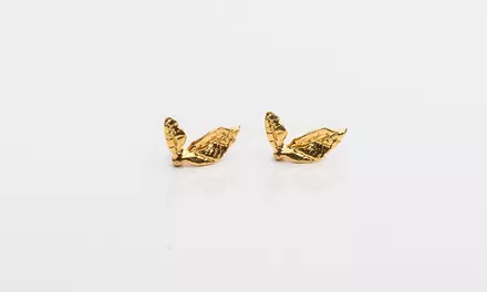 Επίχρυσα σκουλαρίκια με φύλλα από γιασεμί, € 75,00, Σχεδιασμός: Μαργαρίτα Μυρογιάννη, Cycladic Shop, www.cycladic.gr