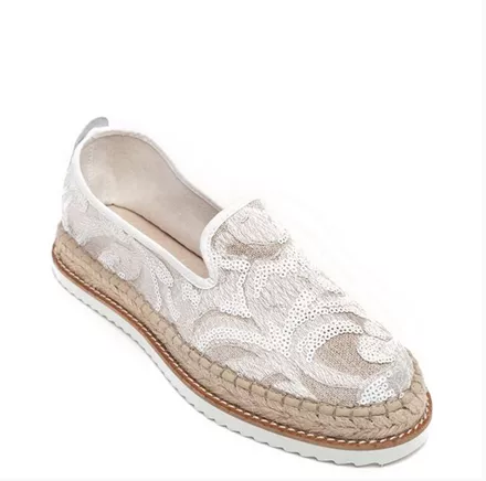 Λευκή εσπαντρίγια με διακόσμηση από λευκές παγιέτες, Migato, από 60.00 ευρώ, τώρα 30.00 ευρώ