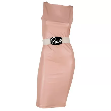 Midi φόρεμα από δερματίνη σε ροζ απόχρωση από τη συλλογή της Αλεξάνδρας Κατσαίτη 108,12 ευρώ, stylishious.com