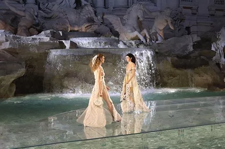 Το περίφημο συντριβάνι αναστηλώθηκε με την επιμέλεια του οίκου Fendi και του Karl Lagerfeld και πλέον ξέρουμε και γιατί! Ο οίκος γιορτάζει φέτος τα 90 χρόνια παρουσίας του και δεν θα μπορούσε παρά να τα γιορτάσει με τον πιο κατάλληλο τρόπο. Η συλλογή, δε, αποτελεί από μόνη της μνεία στην τέχνη και την ιστορία της Ιταλίας κάνοντάς την παρουσίασή της στην Fontana di Trevi να μοιάζει ακόμα πιο ταιριαστή.