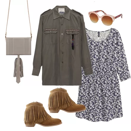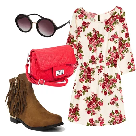Φόρεμα, H&M, 14,99 ευρώ, www.hm.com/grCardigan, Ioanna Kourbela, 72,00 ευρώ, www.stylebubbles.comAnkle boots με κρόσια, Jeffrey Campbell, 135,20 ευρώ, www.favela.grΤσάντα ώμου, Ζeus + Δione, 192,00 ευρώ, www.aesthet.comΓυαλιά ηλίου, Pink Woman, 7,99 ευρώ, www.pinkwoman-fashion.com