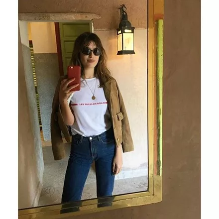 Το it-girl Jeanne Damas προτίμησε τη μίνιμαλ εκδοχή του logo.