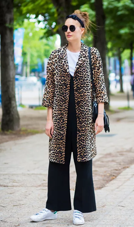 Λευκό t-shirt; Συνδύασέ το με την αγαπημένη σου ολόσωμη φόρμα και το λεοπάρ πανωφόρι σου για ένα άψογο look.