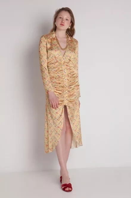 Σατέν με λουλούδια και κουμπιά Stefania Vaidani, μπορείς να το βρεις στο stefania-vaidani.com