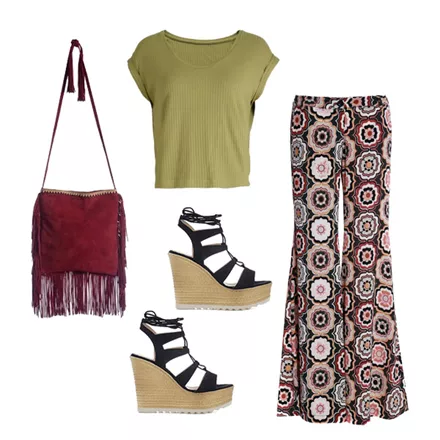 Toπ, e-xclusive, 13,00 ευρώ, www.e-xclusive.comΠαντελόνι καμπάνα εμπριμέ, Helmi, 41,93 ευρώ (από 59,90), www.helmi.gr