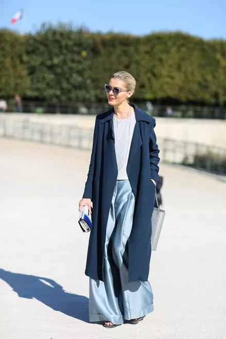 Το μετάξι, ιδίως στην πιο χειμερινή, κρεπ, εκδοχή του, έχει αγαπηθεί από τα παντελόνια της σεζόν. Δοκίμασέ το σε φαρδιά αλλά tailored μορφή για χαλαρή πολυτέλεια.