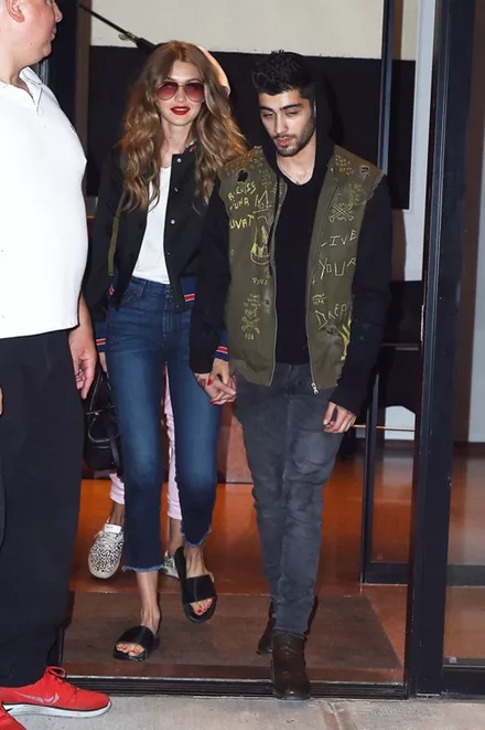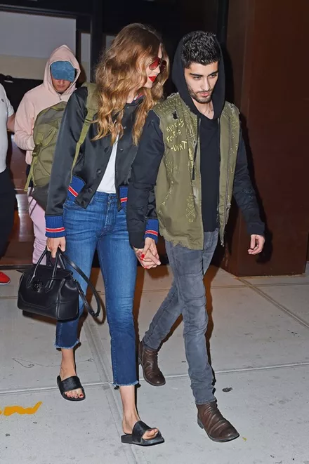 Matching Gigi Hadid and Zayn Malik hold hands as they head to the airport, NYC