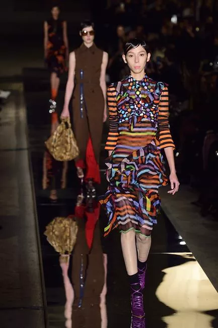 Ο ημιπολύτιμος λίθος αχάτης, που είναι περισσότερο "ταπεινός" παρά πολυτελής, μοιάζει να συνδέει όλα τα looks της συλλογής. Από τα διπλά sporty φορέματα σε πλούσιες αποχρώσεις πετραδιών, μέχρι τα prints από τα υπνωτιστικά νερά του αχάτη και την ίδια την πέτρα, δεμένη σε τεράστια μενταγιόν που κρέμονται χαμηλά στην κοιλιά, η λατρεία της Γης και των ενεργειακών πετρωμάτων της γίνεται βασικό σημείο αναφοράς.