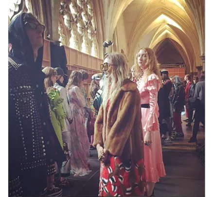 H επιλογή του Westminster Abbey μαρτυρά την αγάπη του καλλιτεχνικού διευθυντή του οίκου, Alessandro Michele, για την πλούσια ιστορία του Λονδίνου και το ιδιότυπο αγγλικό στυλ που αποτελεί μείγμα της ζωηρής street κουλτούρας του αλλά και του λίγο κιτς, ρομαντικού και μάξιμαλ στυλ της επαρχίας της.