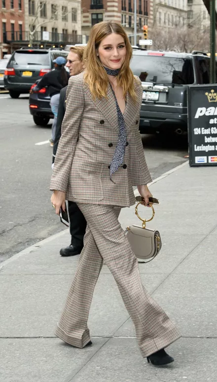 Μπορεί τα κοστούμια να τρομάζουν αρκετές γυναίκες, αλλά, ευτυχώς, η Olivia Palermo μάς έδωσε ένα στυλιστικό «μάθημα» για το πώς να «μαλακώσουμε» κάθε ανδρόγυνο σύνολο. Η Olivia φόρεσε ένα κοστούμι με το πιο hot καρό μοτίβο της σεζόν, το οποίο συνδύασε με ένα printed, skinny μαντήλι τυλιγμένο στον λαιμό της και μία μικρή, stylish τσάντα.