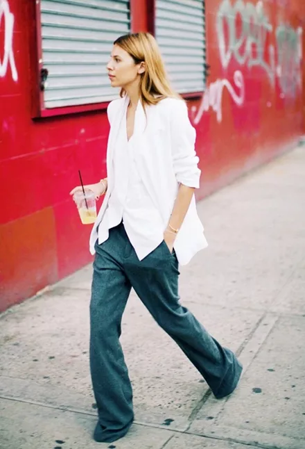 Wide leg παντελόνι; Άσε το πουκάμισο σου όσο πιο χαλαρό γίνεται, ξεκουμπώνοντας μερικά κουμπιά.